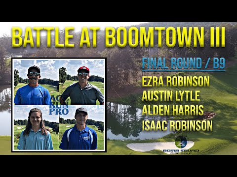 Watch top pros Lytle, Harris, and Robinson battle in Battle at Boomtown III. Witness their skills and strategies in a high-stakes round of disc golf.