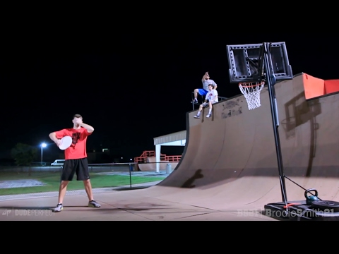 Watch Brodie Smith take on the ultimate challenge as he attempts the longest basketball shot ever seen in a hilarious disc golf stunt!