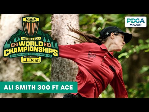 Watch Ali Smith's incredible 300 ft ace at the 2023 PDGA Professional Disc Golf World Championships! Witness precision & skill of top pros in action.