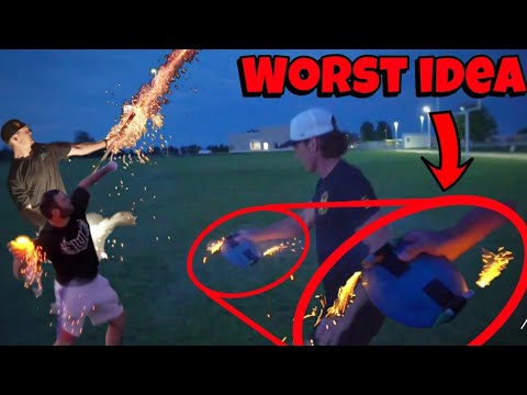 Watch Ezra Aderhold's hilarious prank as he duct tapes fireworks to discs! Will they land a hole-in-one or blow up the course?