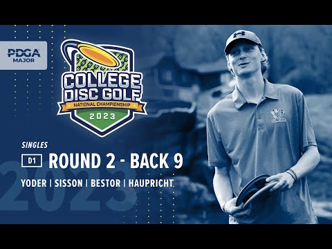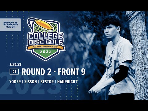 Watch Yoder, Sisson, Bestor, and Haupricht battle it out in DI - Singles R2B9 at the 2023 College Disc Golf National Championship.
