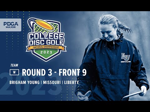 Team R3F9 wins at 2023 College Disc Golf Nationals, featuring Brigham Young, Missouri, & Liberty in thrilling Round 3 action.