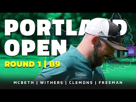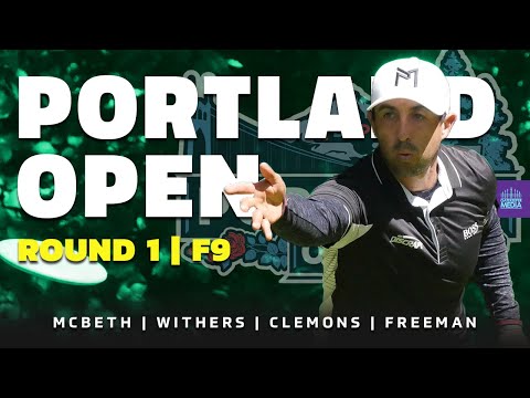 Watch McBeth, Withers, Clemons, & Freeman compete on hole 9 of Rd1 at the 2021 Portland Open. Top disc golf pros showcase their skills in action.
