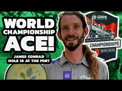 Watch James Conrad ace Hole 16 at the 2021 Disc Golf World Championships! A thrilling moment in disc golf history that's a must-see for any PDGA fan!