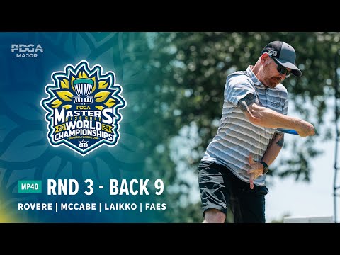 Watch top pros Rovere, McCabe, Faes, & Feldberg compete in MP40 R2F9 at the 2024 PDGA Masters Disc Golf World Championships!