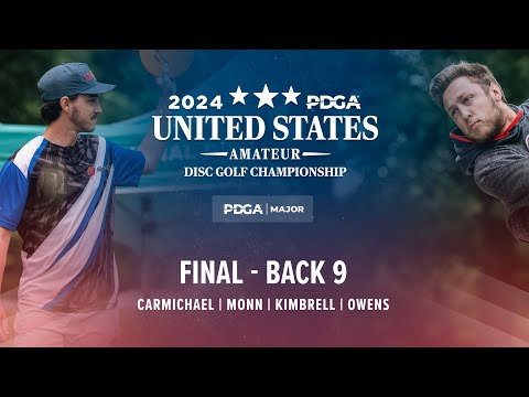 Watch final round action from Carmichael, Monn, Kimbrell, & Owens at the 2024 PDGA U.S. Amateur Disc Golf Championship! Thrilling skills and strategy on display.