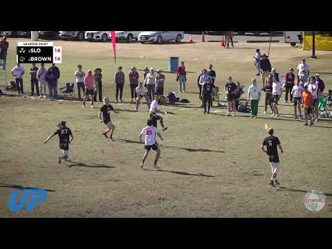 Watch Brown battle Cal Poly-SLO at the intense Universe Point tournament, presented by UP Cleats. Thrilling disc golf action awaits!
